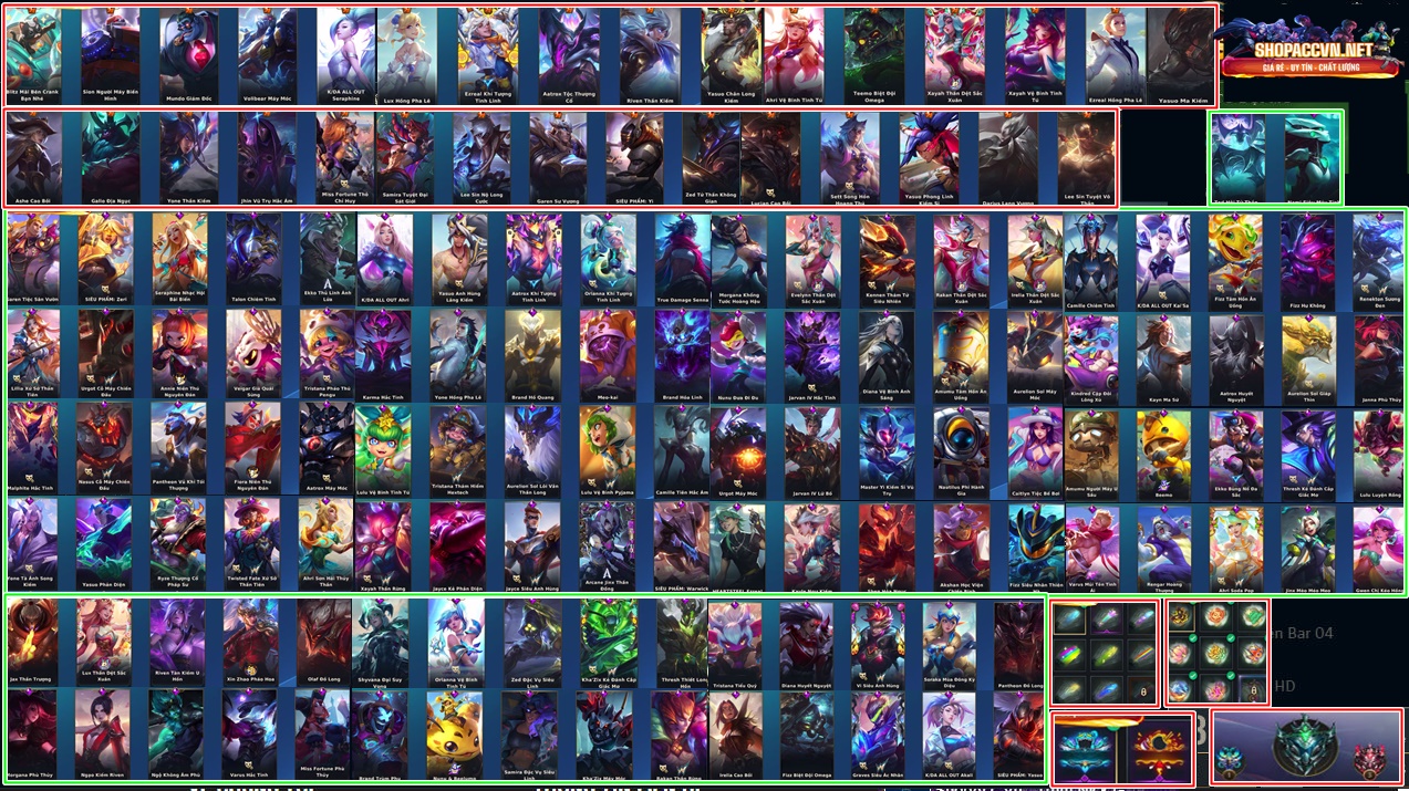 ✅SIÊU PHẨM: FULL TƯỚNG - 5 SKIN VÀNG - 17 SKIN ĐỎ - 72 SKIN TÍM ✅FULL SKIN: DỆT SẮC XUÂN - NÚT BẤM - CỜ HIỆU