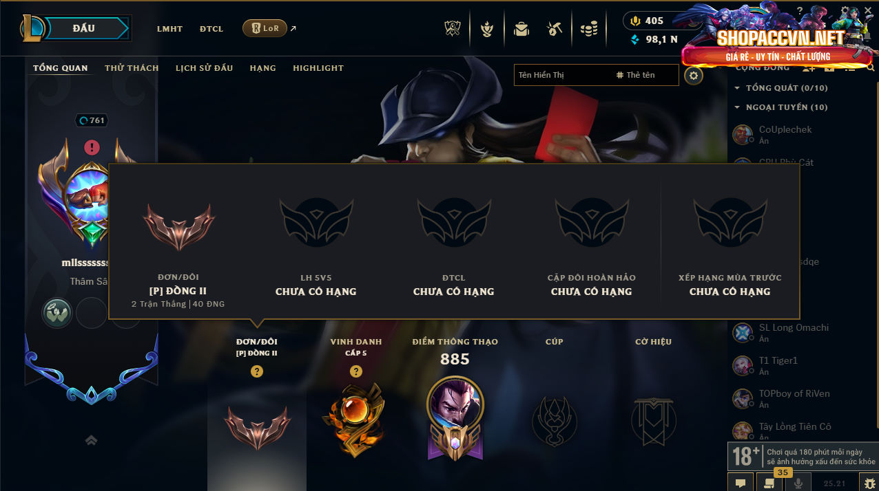 DANH MỤC: Mua Nick Liên Minh Giá Rẻ