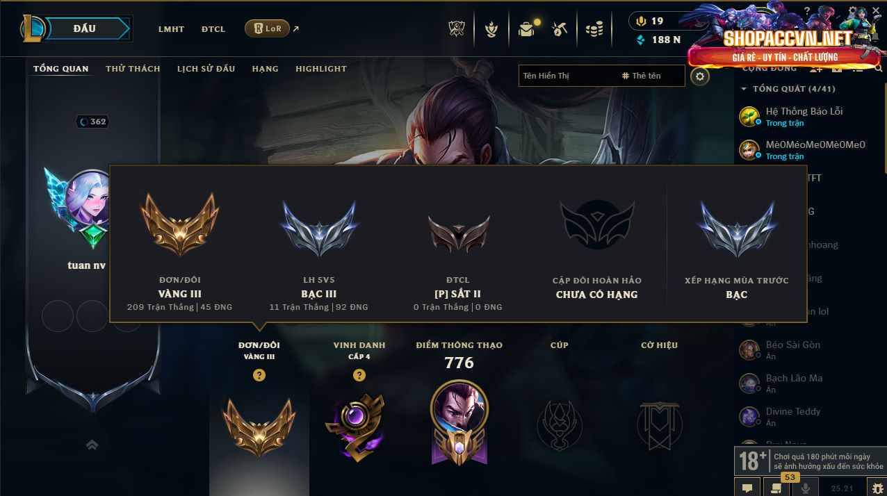 Shop Acc Tốc Chiến|Mua Acc Tốc Chiến|Mua Acc Liên Minh|Acc LQ|Acc TFT