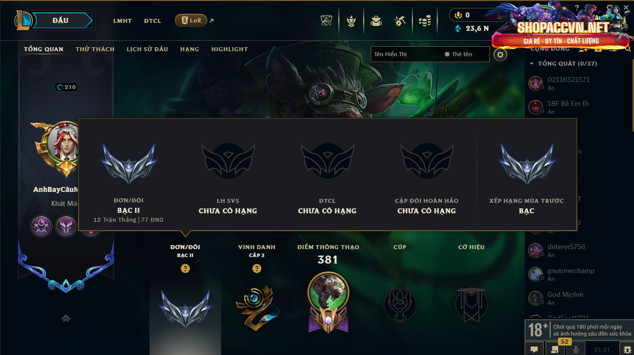 Shop Acc Tốc Chiến|Mua Acc Tốc Chiến|Mua Acc Liên Minh|Acc LQ|Acc TFT