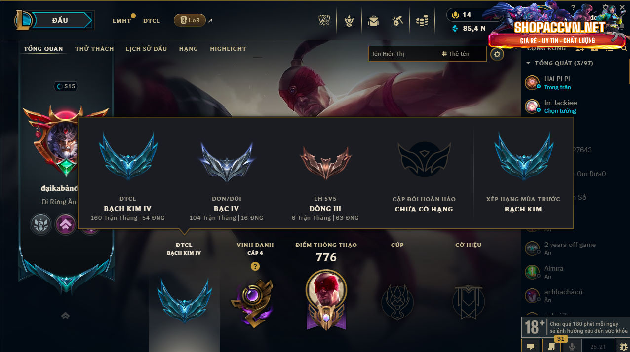 DANH MỤC: Mua Nick Liên Minh Giá Rẻ