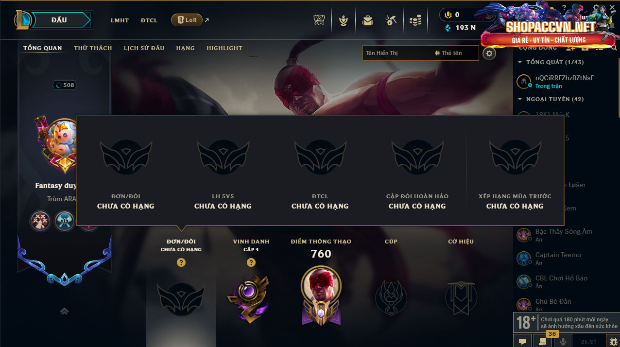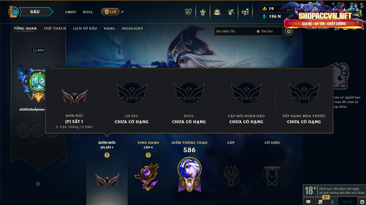 DANH MỤC: Mua Nick Liên Minh Giá Rẻ