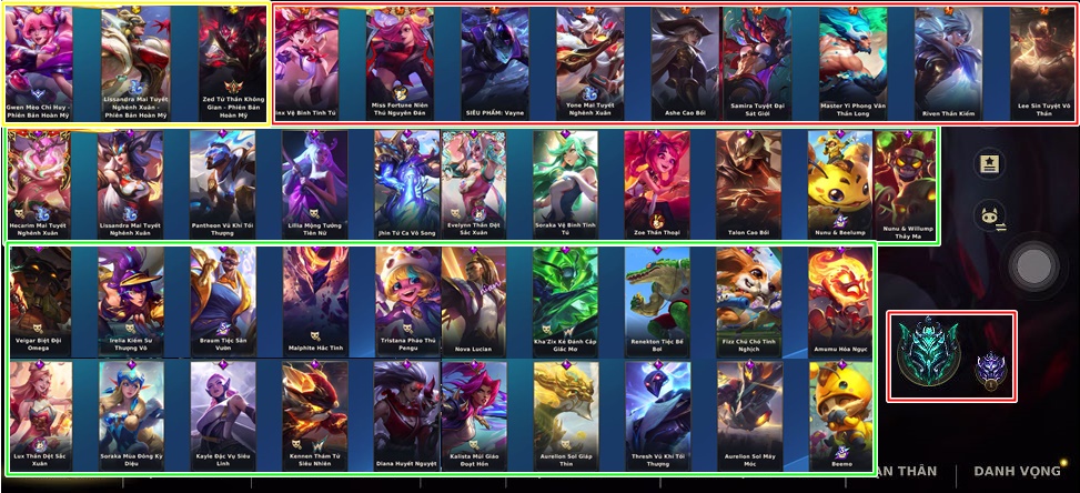 ✅FULL TƯỚNG: 1 SKIN VÀNG - 10 SKIN ĐỎ - 73 SKIN TÍM